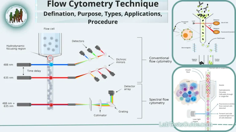 Flow cytometry is a technique used to analyze the physical and chemical characteristics of particles in a fluid as they pass through a laser beam. In the context of immunology and medicine, flow cytometry is often used to analyze cells from blood or other bodily fluids to identify and quantify different cell types based on specific surface markers or other characteristics.